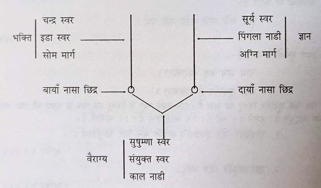 √••प्रत्येक स्वर में पृथ्वी, जल, वायु एवं अग्नि तत्व होते हैं। आकाश तत्व का उदय होने पर मृत्युकाल उपस्थित होता है। ३ स्वर X ४ तत्व = १२ राशियाँ। इस प्रकार स्वर के माध्यम से ठीक-ठीक राशि वा लग्नोदय का ज्ञान होता है। स्वर प्राण है। प्राण ब्रह्म है। ब्रह्म का ज्ञान होने पर सब कुछ हस्तामलकवत जाना जाता है। वे महापुरुष धन्य हैं जिन्हें इसका सम्यक् ज्ञान है। तत्वज्ञाय नमः ।